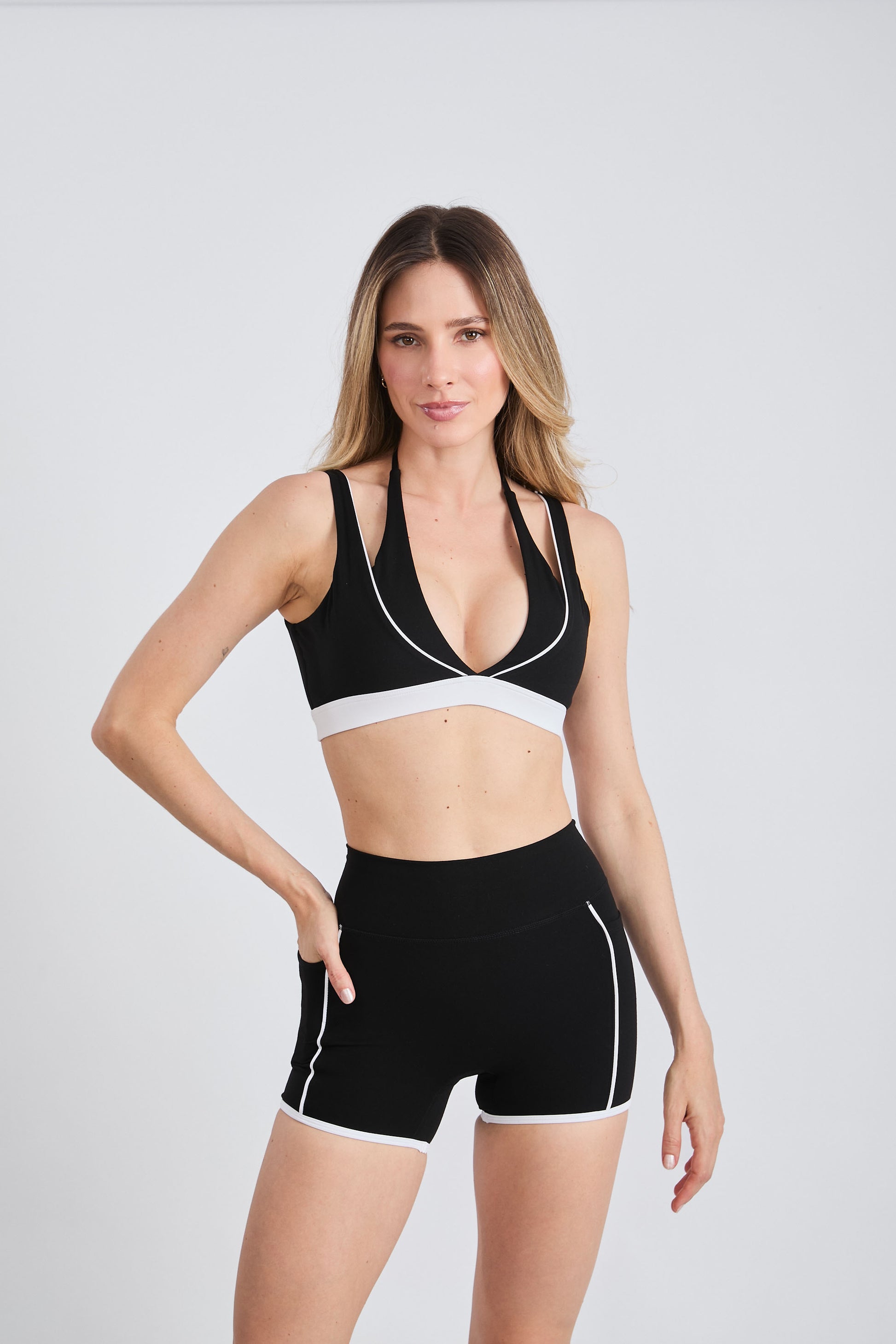 An elevated essential . El Short Kaia combina comodidad con detalles que lo hacen ver instantly stylish. Tiene bolsillos laterales funcionales y un piping blanco en contraste en los costados y en el borde inferior, creando un look sporty–chic súper pulido.