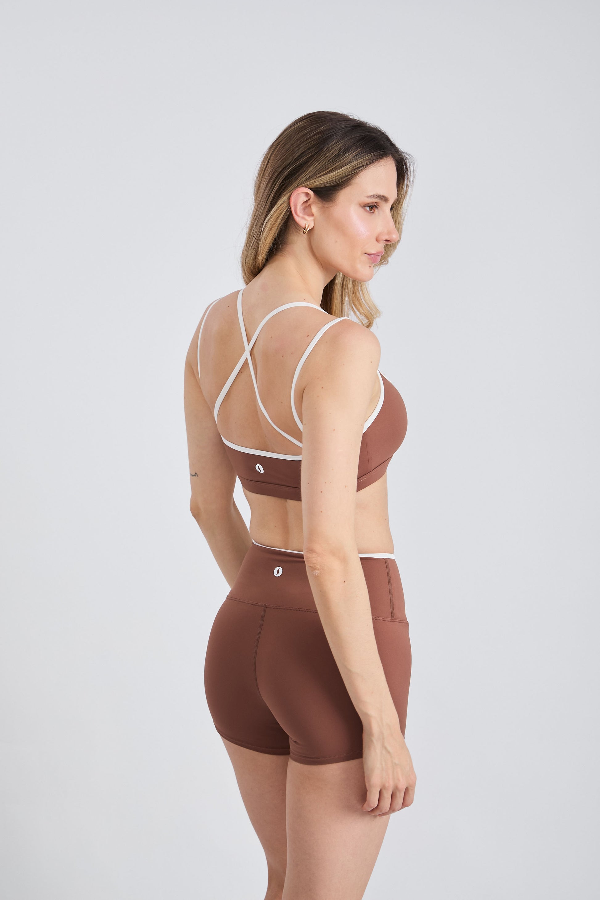 A clean, sporty must-have. El Top Lua combina doble tira delgada con un diseño cruzado en la espalda, creando un look moderno y súper favorecedor. El piping blanco en contraste le da ese toque sporty–minimal.