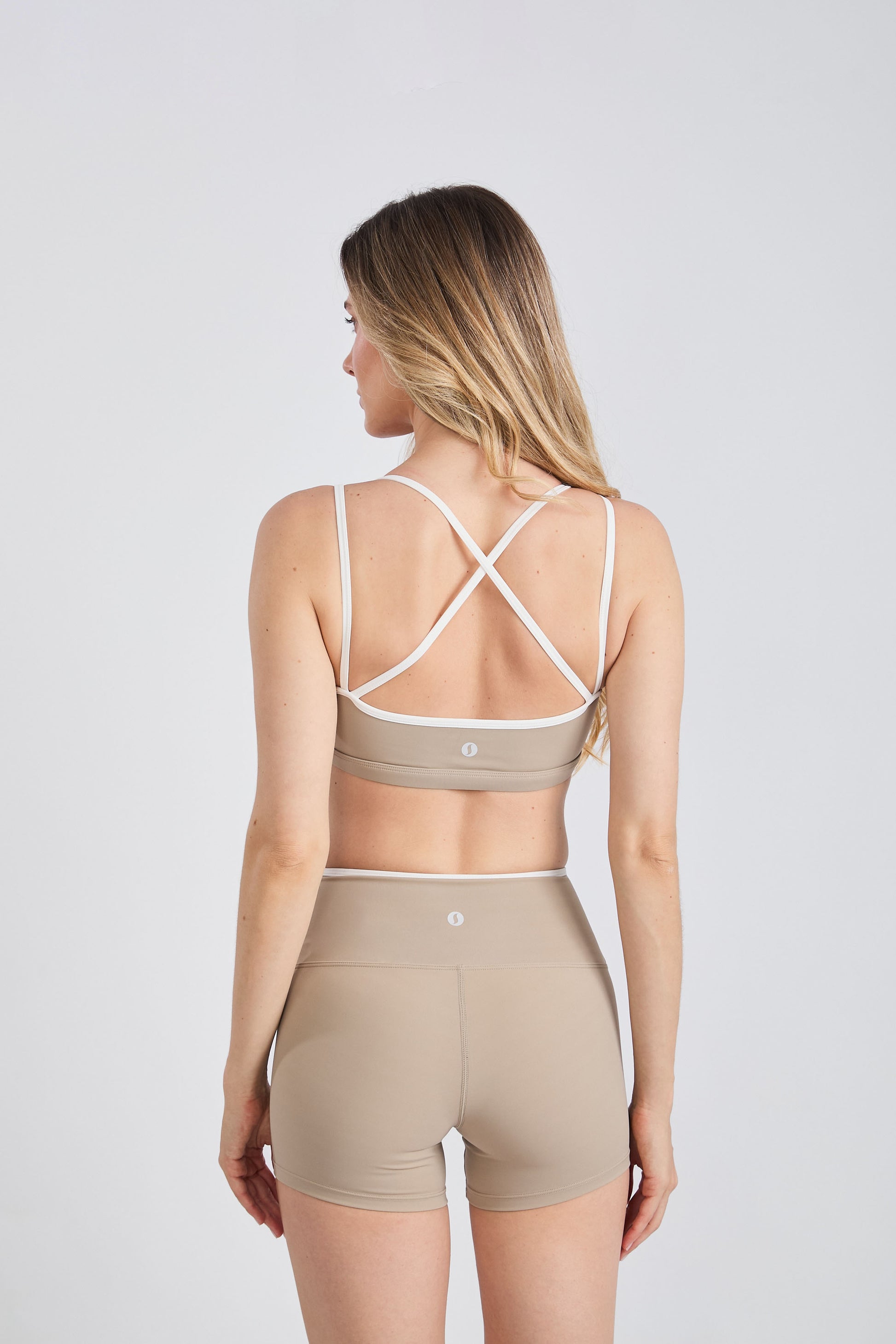 A clean, sporty must-have. El Top Lua combina doble tira delgada con un diseño cruzado en la espalda, creando un look moderno y súper favorecedor. El piping blanco en contraste le da ese toque sporty–minimal.